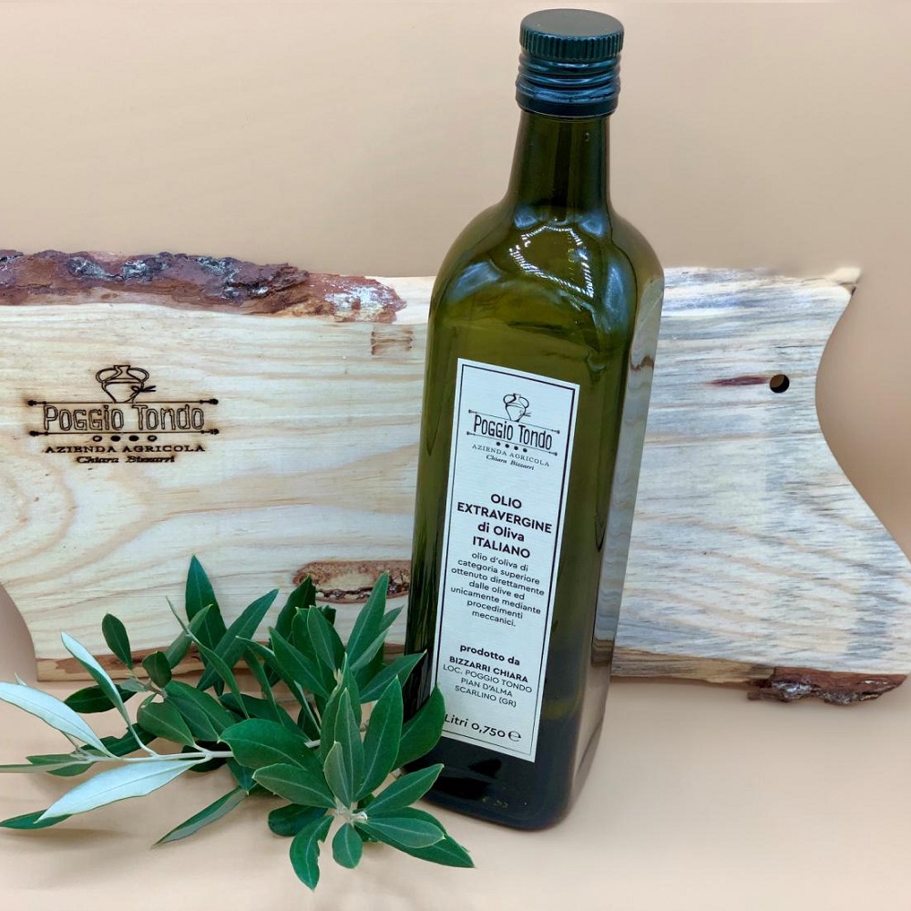 Extra Virgin Olive Oil, rich in polyphenols, cold pressed, exclusively with mechanical processes, starting with olives (not treated with chemical pesticides) manually harvested in the centuries-old olive grove of the Bizzarri’s family, a member of the Consorzio dell’Olio Toscano IGP. Amongst the cultivars is the “Olivastra Scarlinese” of which Chiara Bizzarri is a grower-custodian, on behalf of the Regione Toscana, according to law 194/2015. 750 ml